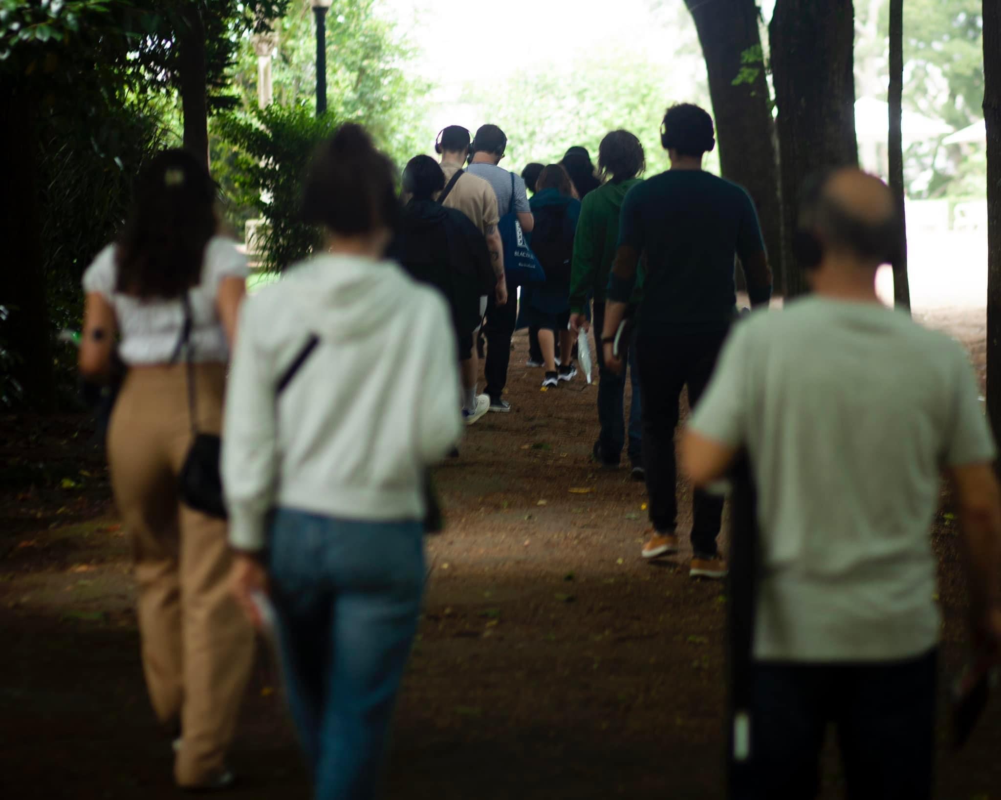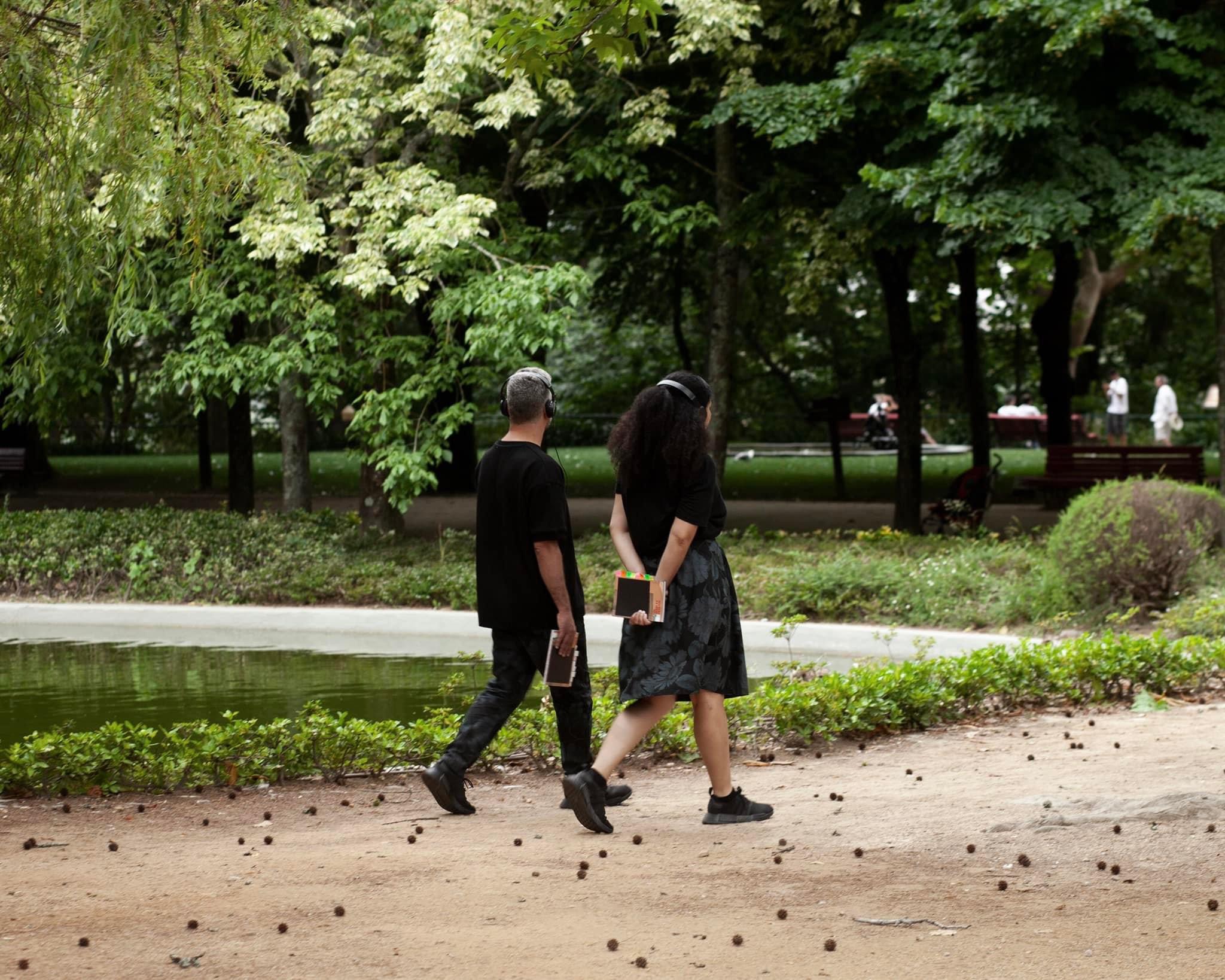 CORTEJO is a guided-performative tour in the gardens of the Palácio de Cristal, where the Portuguese Colonial Exhibition of 1934 was held, through which the spaces and ideas of the exhibition are tensioned by the absence of buildings and bodies or by their replacement through new themes. The evocation of ruins or empty spaces is the logic that operates the entire journey.